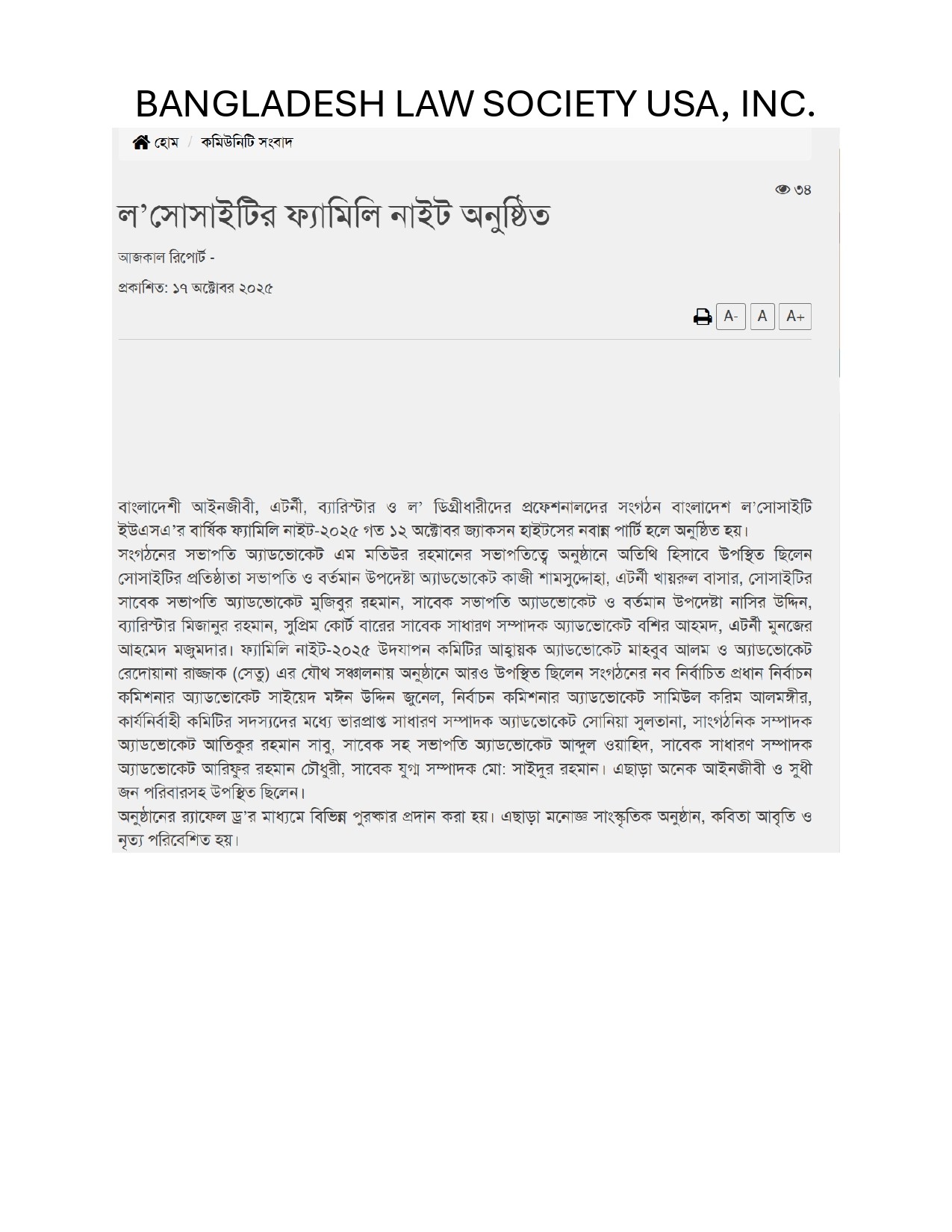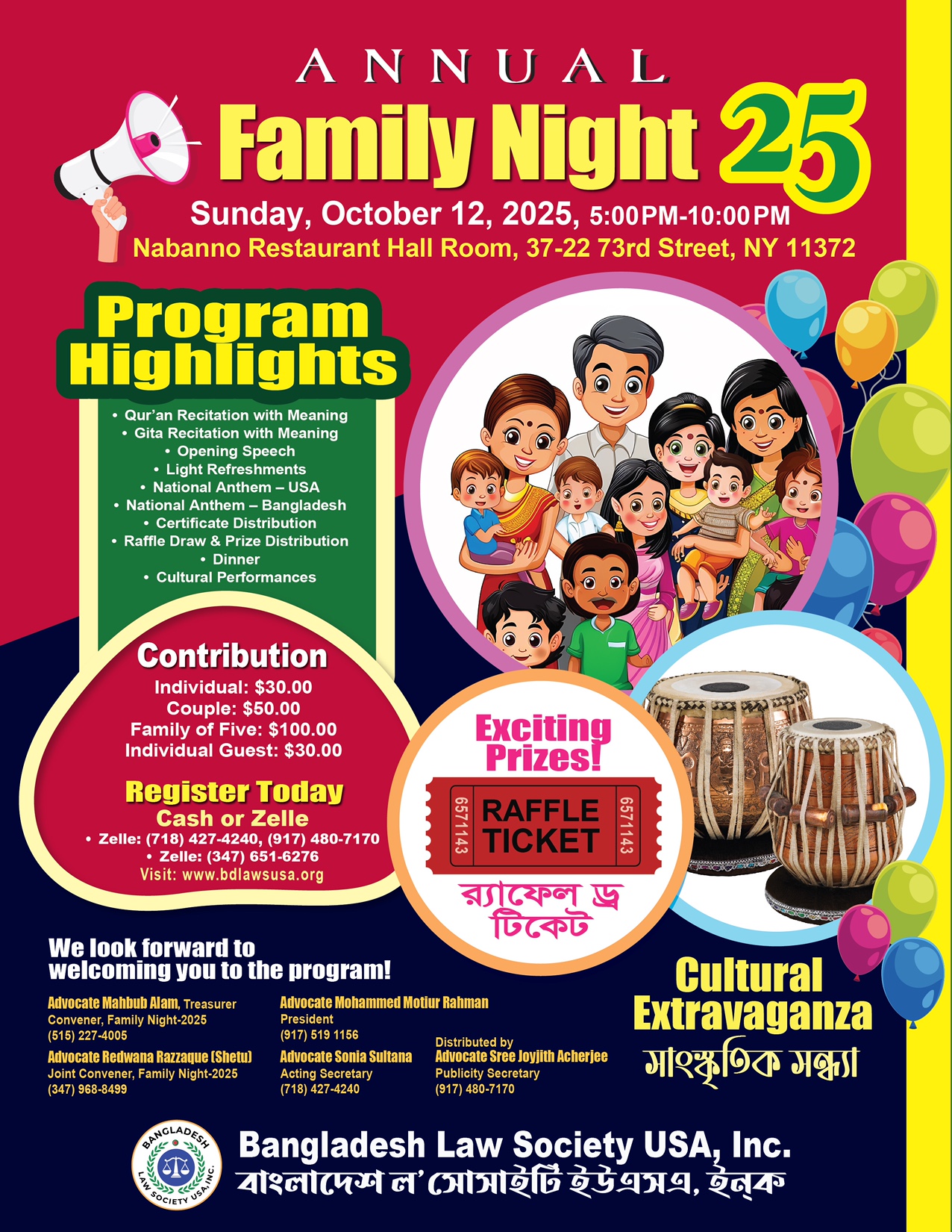 Bangladesh Law Society USA Inc (BLS) standing beside of Bangladeshi American for more than 10 years, providing advocacy, information and service to the USA. Applying for membership is straightforward. Select a membership category that best fits your situation. Submit a membership application along with appropriat...